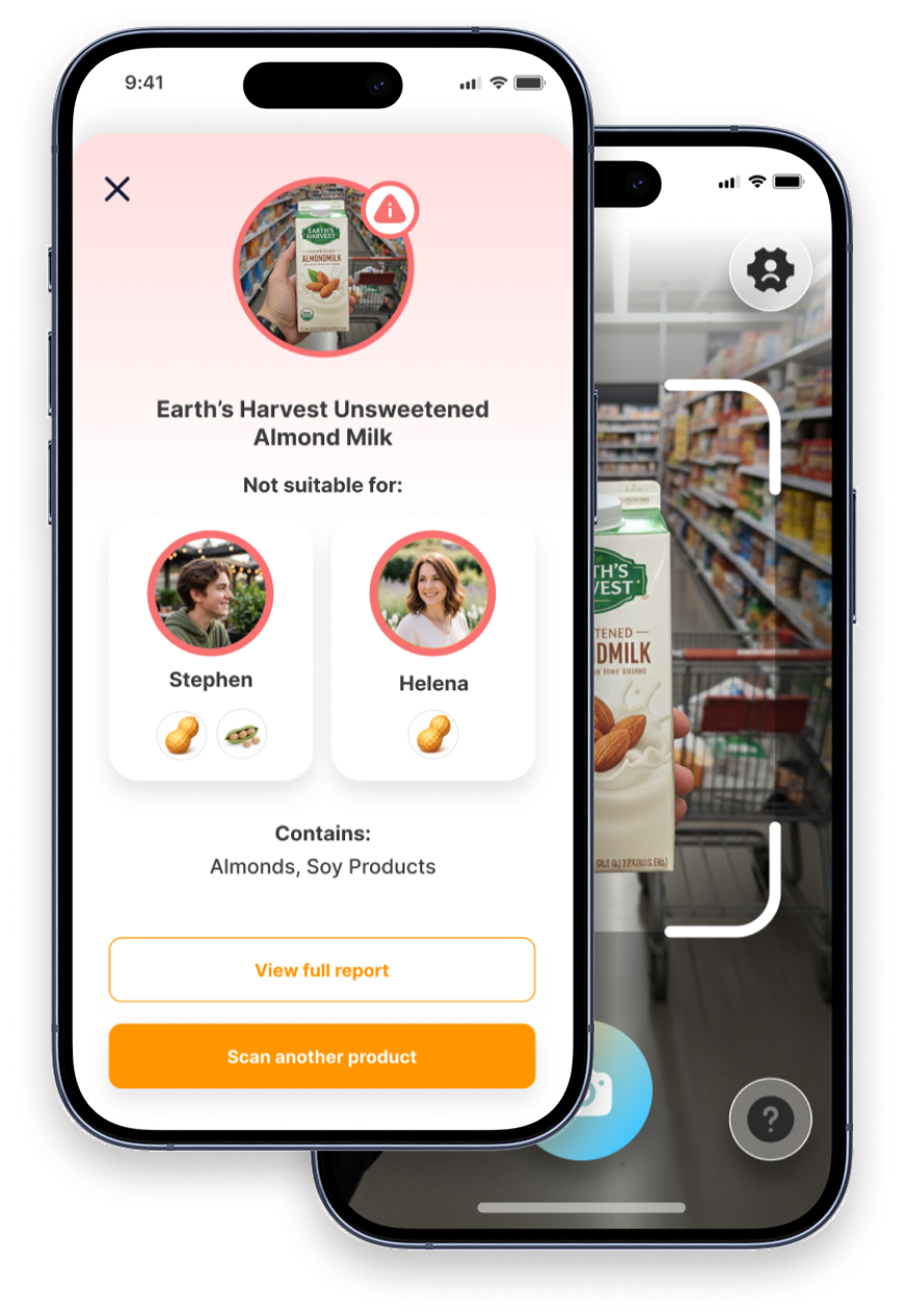 Every scan is matched against your personal preferences, allergies, intolerances, diets, or age-based needs. Built on a rules engine reviewed and signed off by nutritionists and specialists.